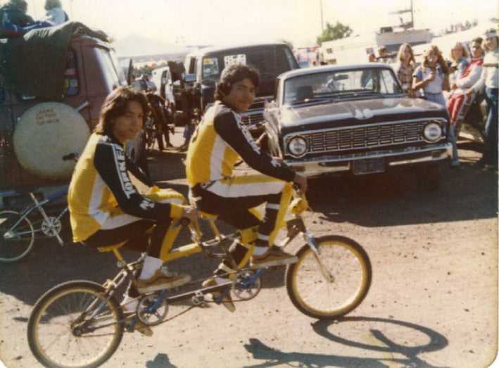 Back in 1978, the iconic photo was taken of Aggie and EK cruising thru the pits on a 20" Torker Tandem. Well, now we have all grown up and while it would be cool to have a 20" tandem... the practicality of the 26" Barbarian 2 Tandem is where it is at.